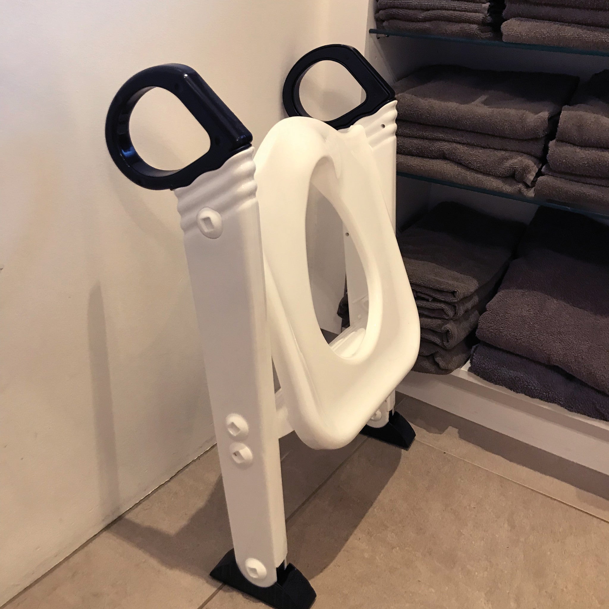 The BabyDan Toilet Trainer with Step helps your child gain confidence and independence when learning to use the toilet. Designed for safety, comfort, and flexibility, it is an ideal way to support your child’s transition from potty to toilet. The flexible fittings on both the seat and the feet ensure the Toilet Trainer fits most toilet shapes securely, although it is not suitable for square toilets. The step can be adjusted to match your child’s height, making it easy to climb up and sit comfortably. Non-slip material under the seat and feet provides extra stability, while sturdy handles offer a secure grip so your child feels safe. The Toilet Trainer fits toilets with a height between 36 and 43 cm. It makes toilet training simple, safe, and stress-free for both you and your child.