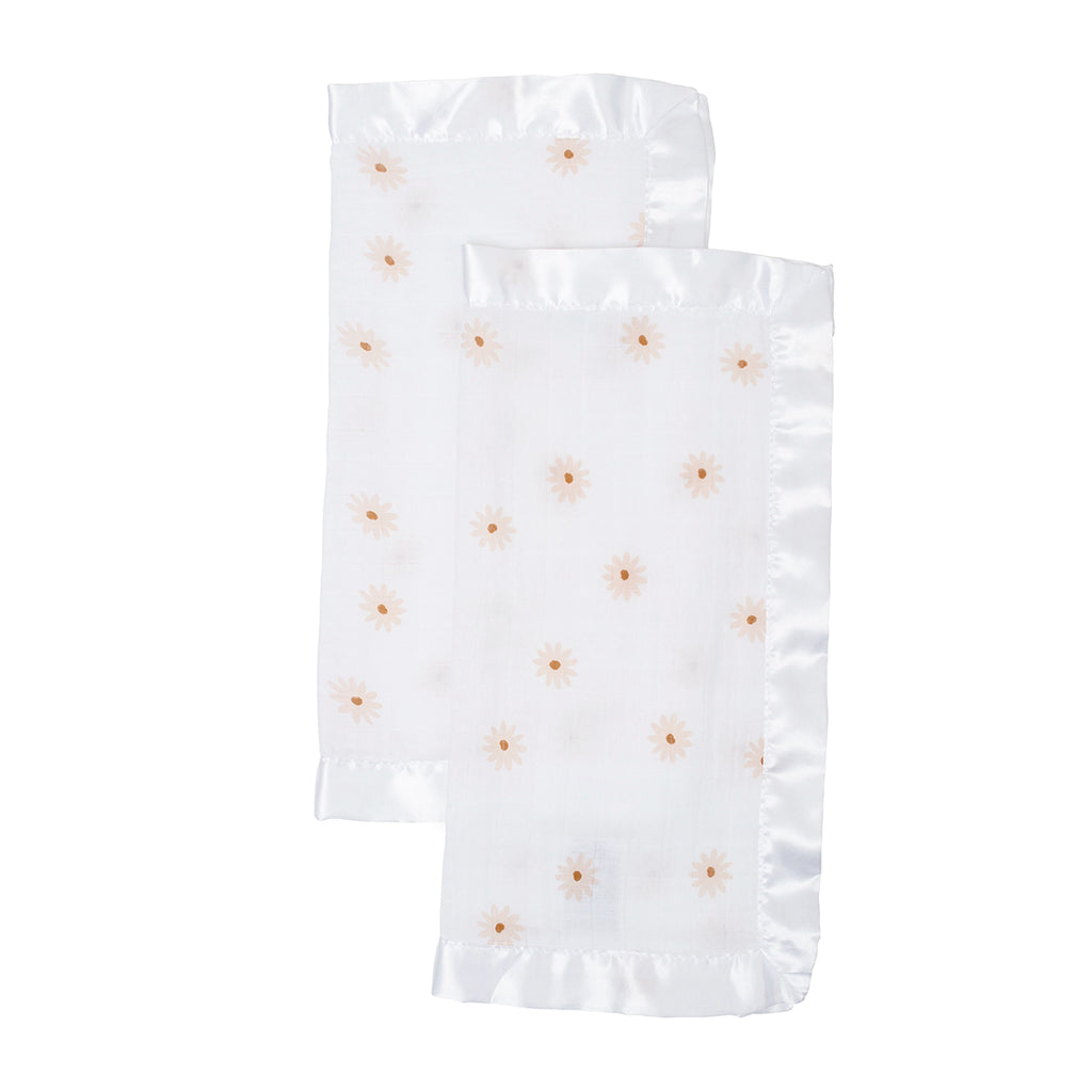 The Lulujo Muslin Security Comforter Blanket 2pk provides soothing comfort for babies wherever they go. Made from breathable, plush cotton muslin, these blankets get softer with each wash, offering a gentle touch for your little one. The smooth satin edge is perfect for babies to hold and touch, providing extra comfort and sensory stimulation.