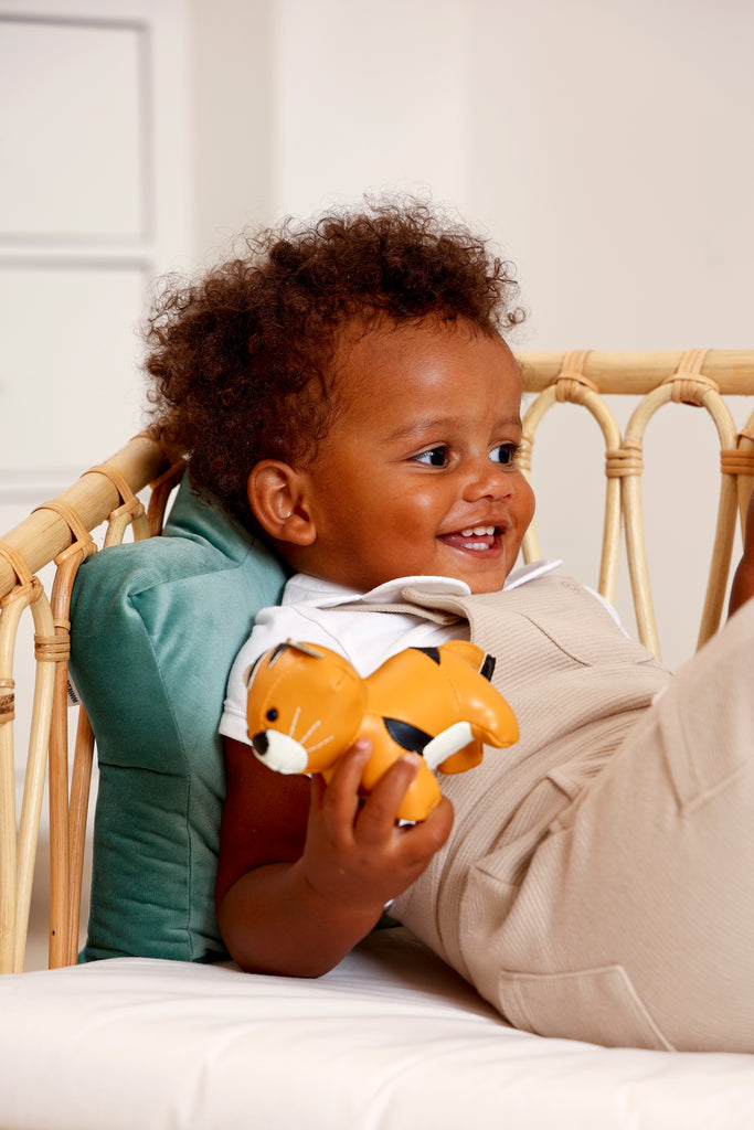 The Little Big Friends Tiny Friends are charming little animals designed with a soft and supple texture, each containing a delightful bell inside. Ideal for babies who have mastered object handling, these friends introduce little ones to various animals and become companions in their imaginative storytelling adventures.