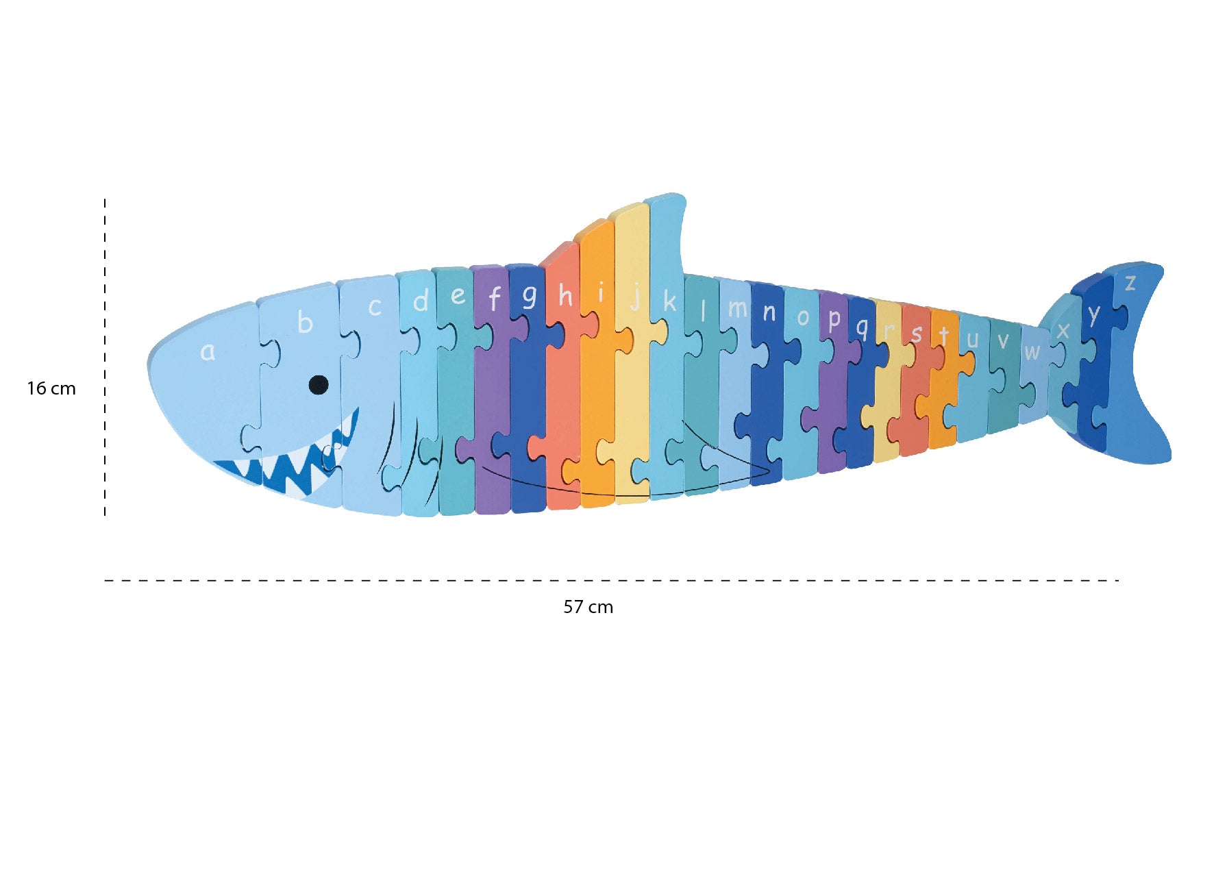 The Orange Tree Toys Shark Alphabet Puzzle makes learning the ABCs exciting and engaging. This brightly painted wooden puzzle features colourful pieces that are perfect for little hands to pull apart and reassemble. It promotes letter recognition, fine motor skills, and concentration, providing hours of educational play. Presented in a beautifully illustrated box with sea creatures, it also makes a thoughtful, gift-ready option, with fully recyclable packaging.
