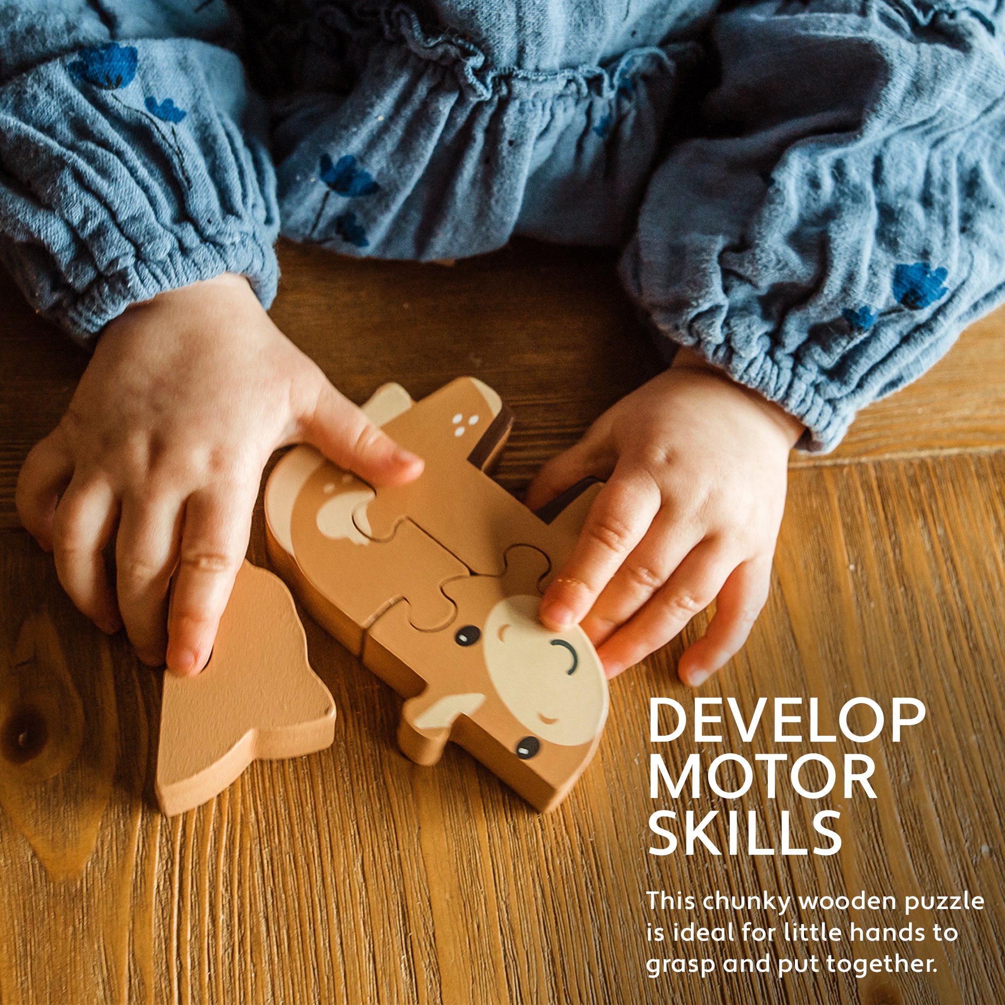 The Orange Tree Toys Pony Wooden Puzzle is perfect for little hands to grasp and assemble. Its chunky wooden pieces and vibrant colours provide excellent visual stimulation while helping to develop fine motor skills and hand-eye coordination, making it a fun and engaging activity for young children.