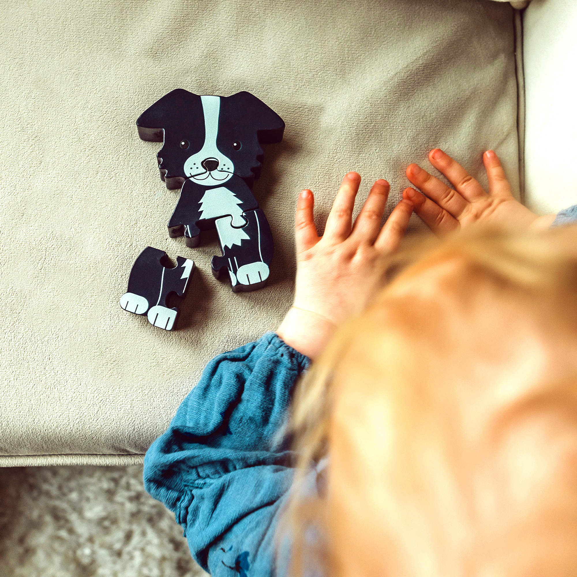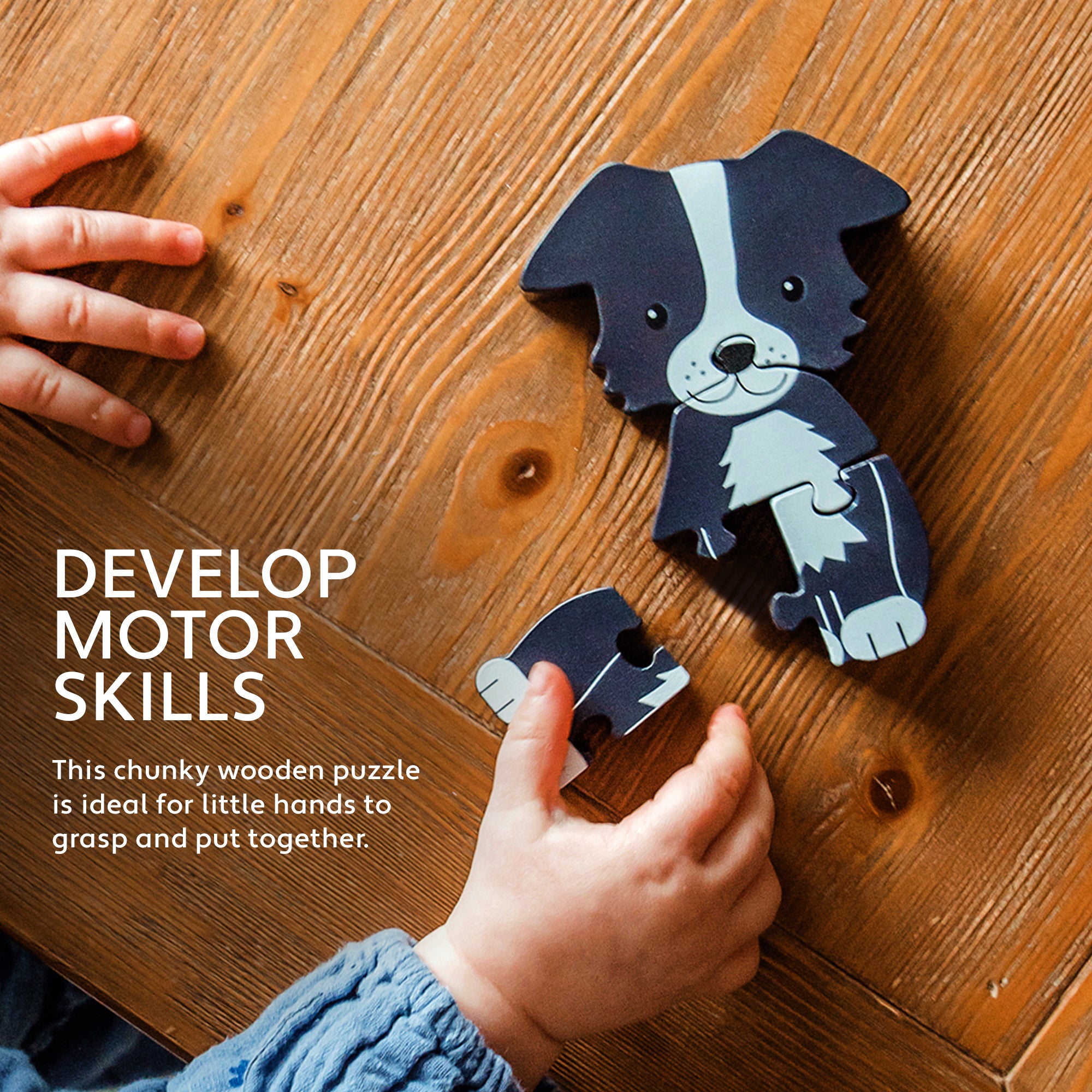 The Orange Tree Toys Sheepdog Wooden Puzzle is perfect for little hands to grasp and assemble. Its chunky wooden pieces and vibrant colours provide excellent visual stimulation while helping to develop fine motor skills and hand-eye coordination, making it a fun and engaging activity for young children.