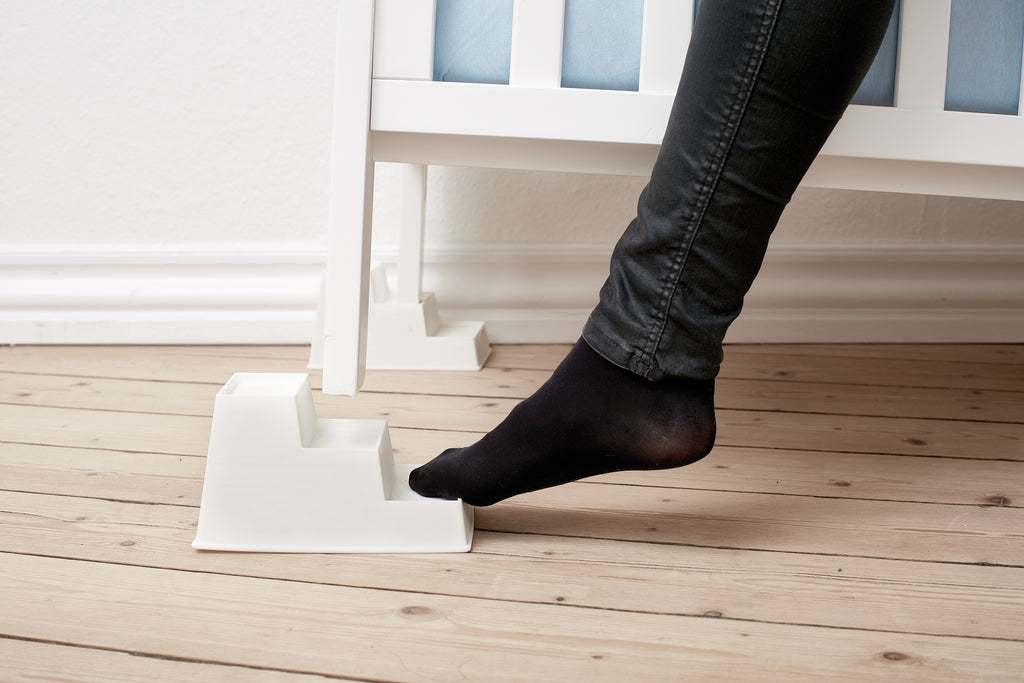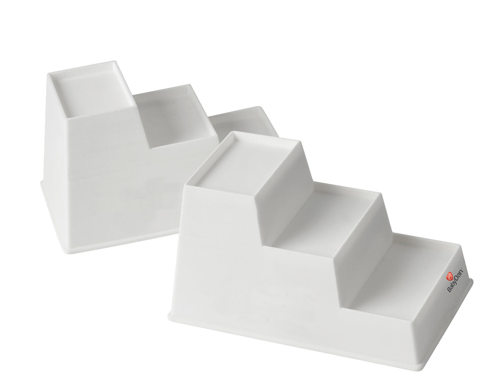 The innovative BabyDan Baby Steps are designed to assist babies with various conditions such as colds, ear infections, mild respiratory problems, and reflux. It allows for easy adjustment of the cot height by lifting the cot onto the next step, providing comfort and relief for the baby.