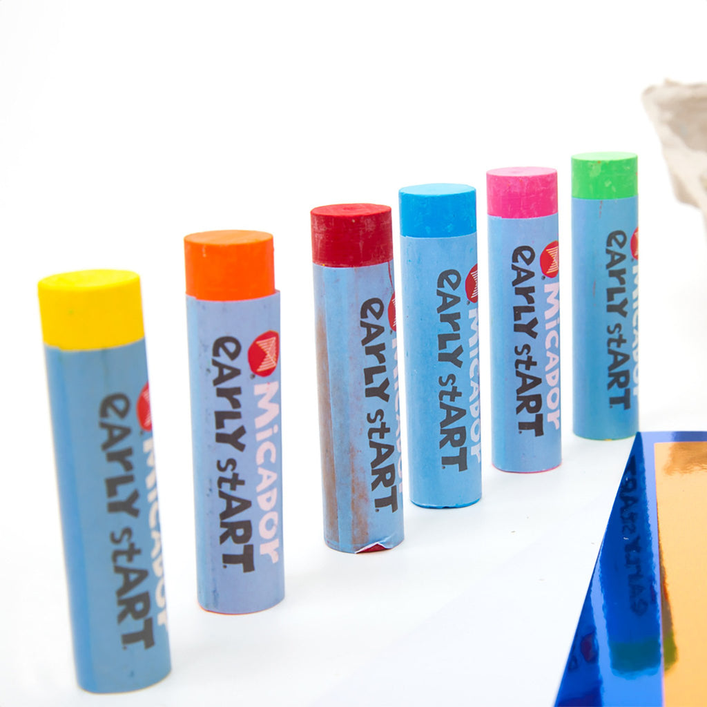 - Includes 6 Softies Tri-Grip Crayons and 6 egg chalks