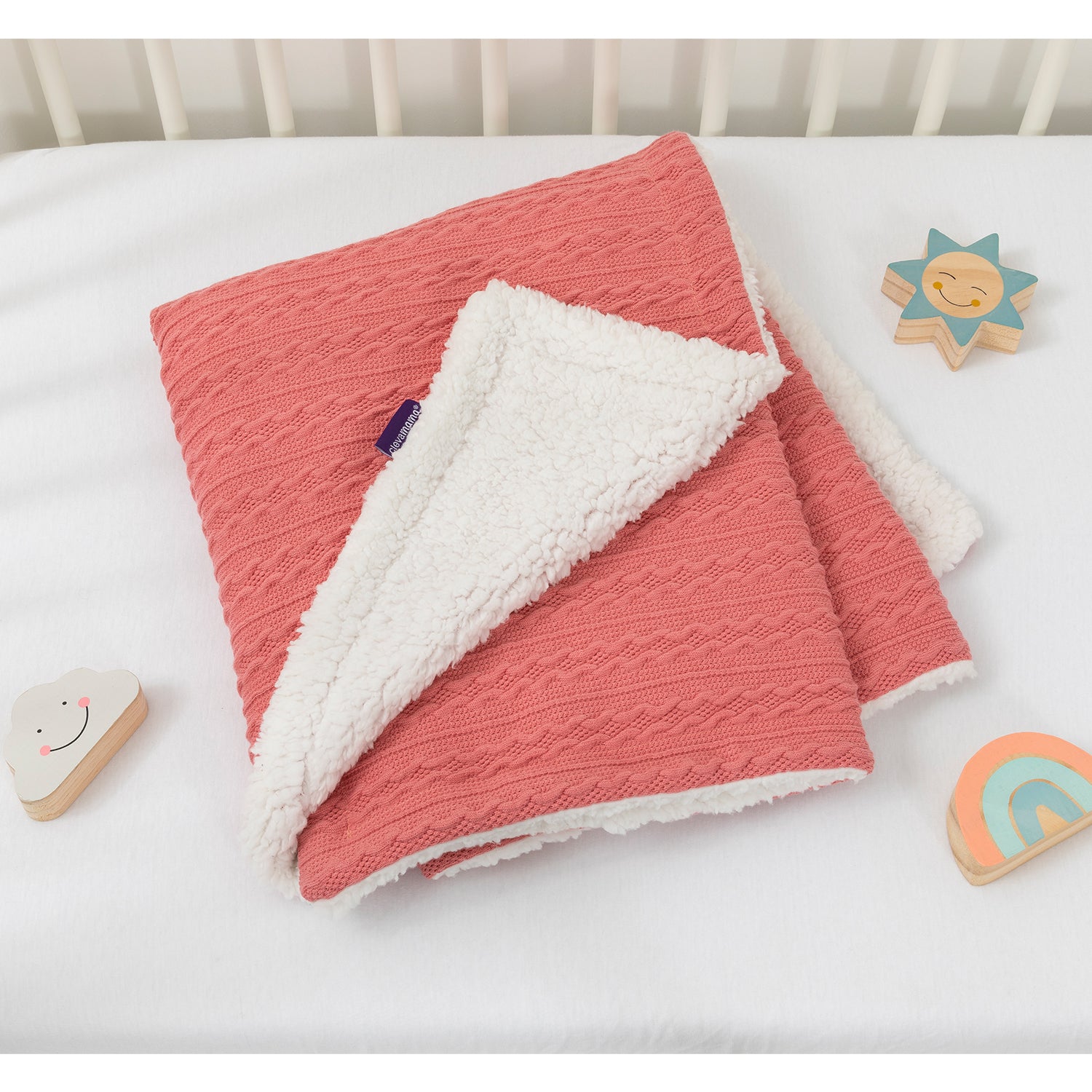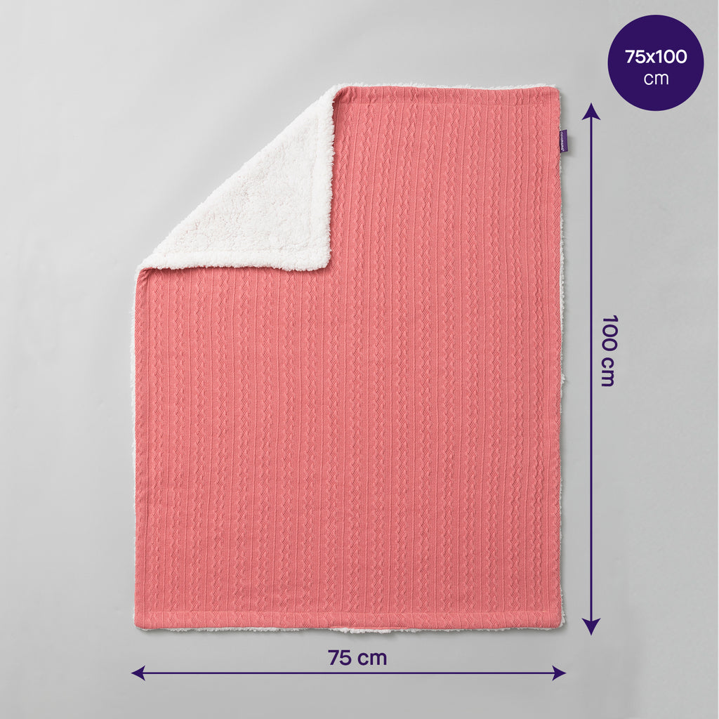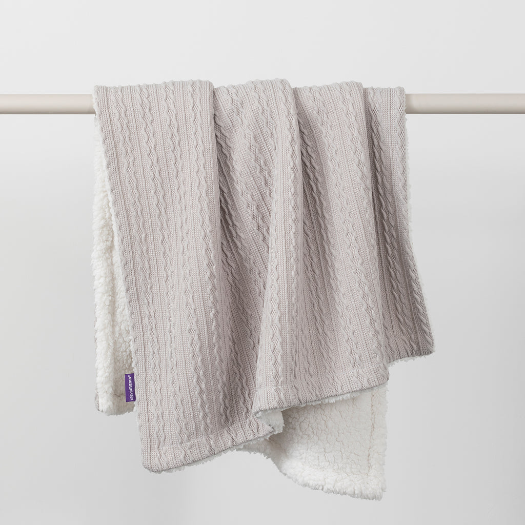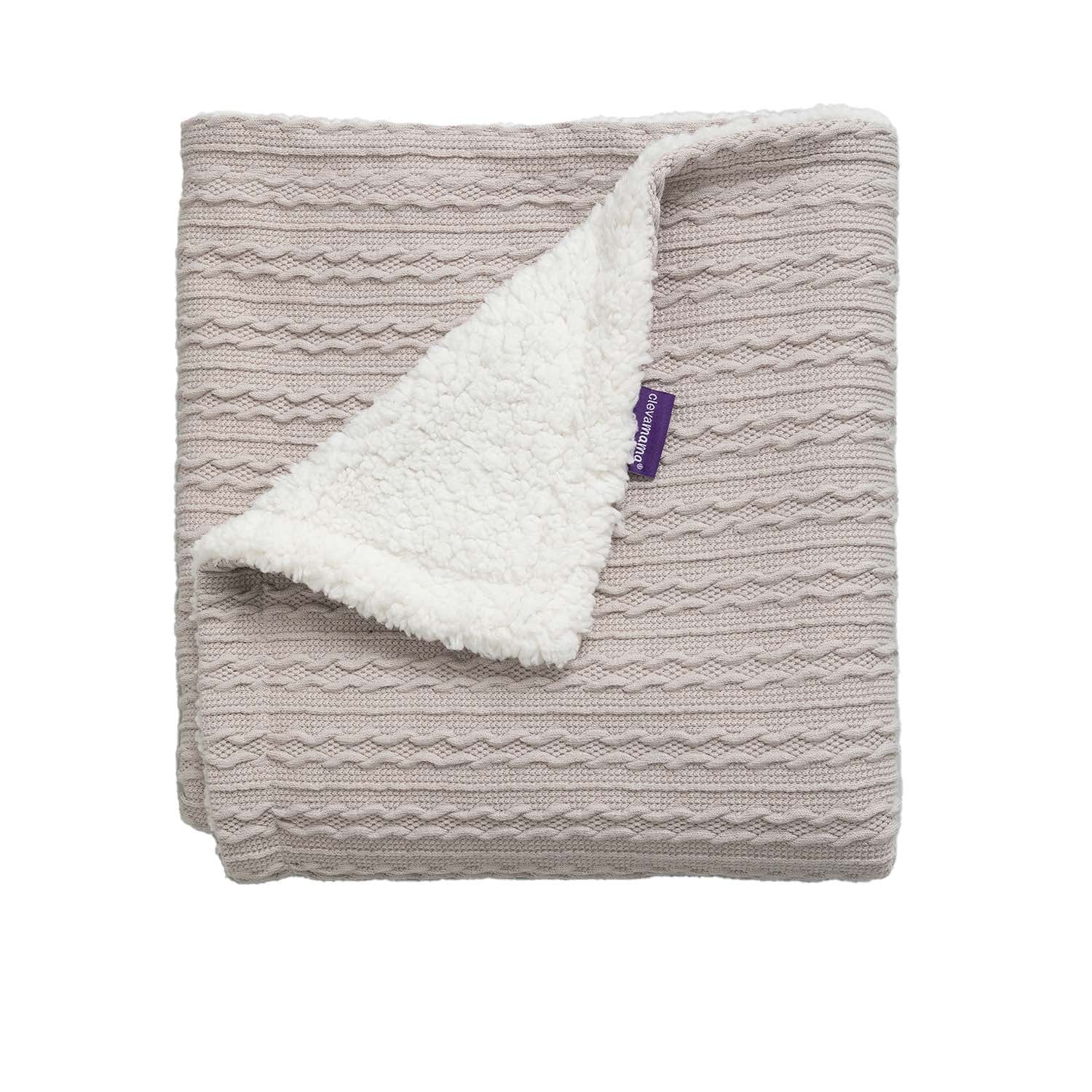 The Clevamama Luxe Sherpa Baby Blanket offers the perfect combination of comfort and warmth. Featuring a cosy cable-knit design on one side, it reverses to a plush, high-pile Sherpa lining that is soft and luxurious. This blanket is ideal for outdoor use, cooler days, and snuggling up with your baby for cozy cuddles.