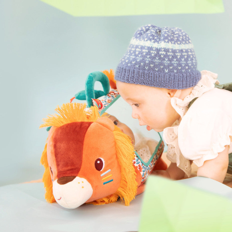 Lilliputiens Jack the Lion Activities Triangle features a triangular shape with a large mirror on one side, perfect for engaging young explorers. The other sides are packed with a variety of activities, enhancing sensory development through varied textures, vibrant colours, and tactile elements. This delightful toy promises hours of play and stimulation for little ones.