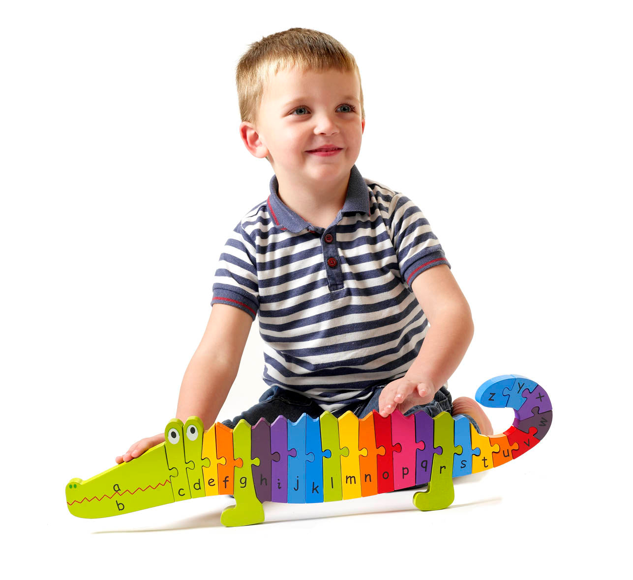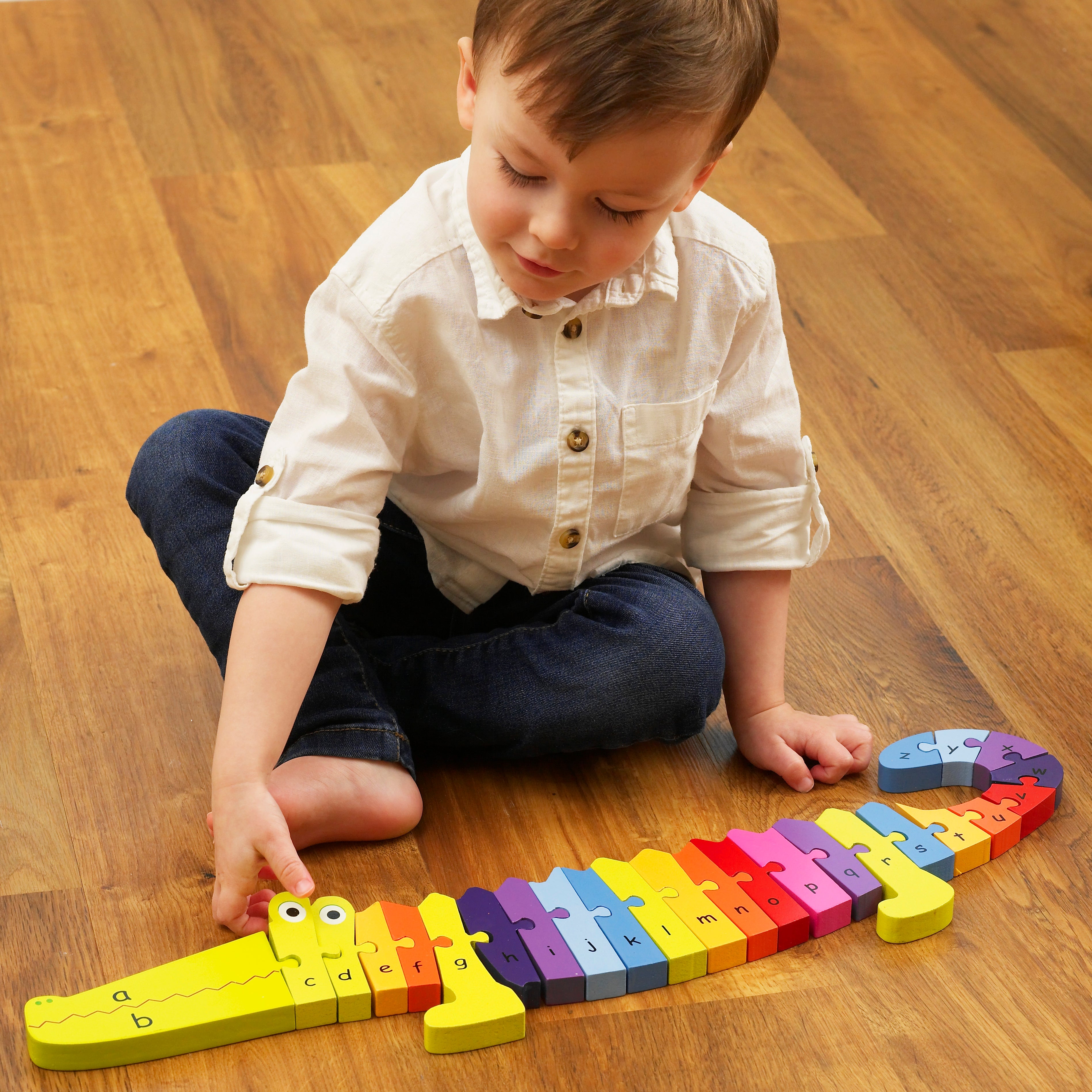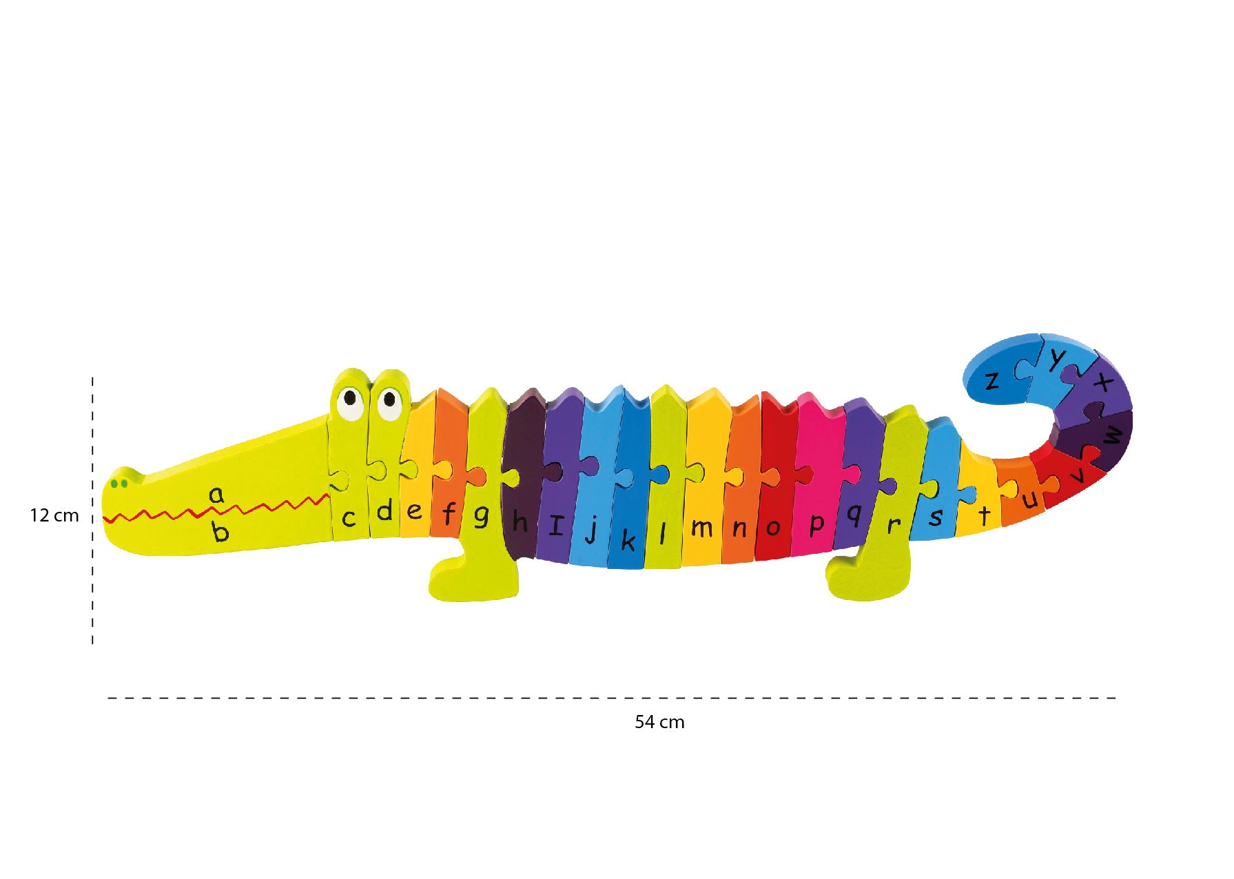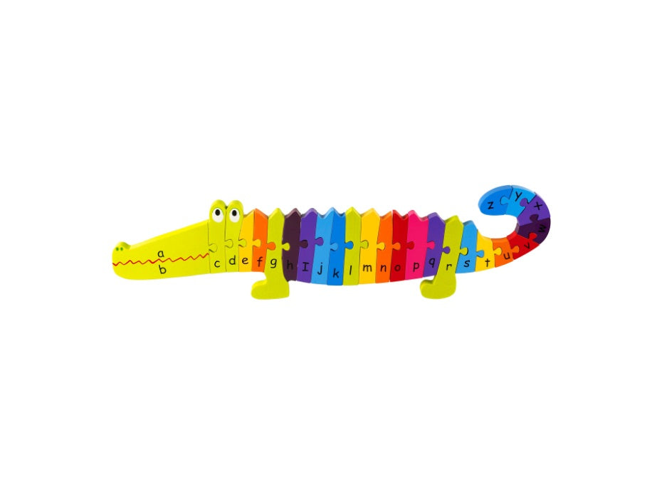 The Orange Tree Toys Alphabet Crocodile Puzzle is a colourful wooden puzzle designed to teach children the letters of the alphabet in a fun and engaging way. Hand-painted in bright colours, the chunky pieces are perfect for little hands to pull apart and reassemble. This puzzle promotes letter recognition, fine motor skills, and concentration, providing hours of educational play.