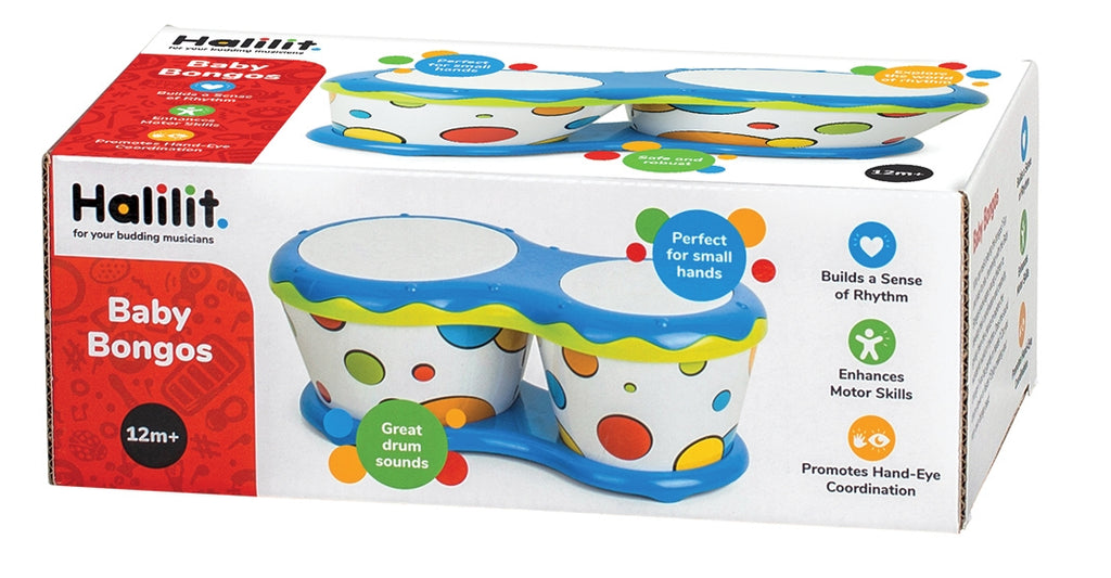 The Halilit Baby Bongos are a pair of professionally tuned, compact drums designed especially for little ones. With two distinct pitches, babies can explore delightful sounds and rhythms, enhancing their coordination and creativity. Featuring an appealing, colourful design and safe, rounded edges, these Baby Bongos offer the perfect introduction to the world of music-making.