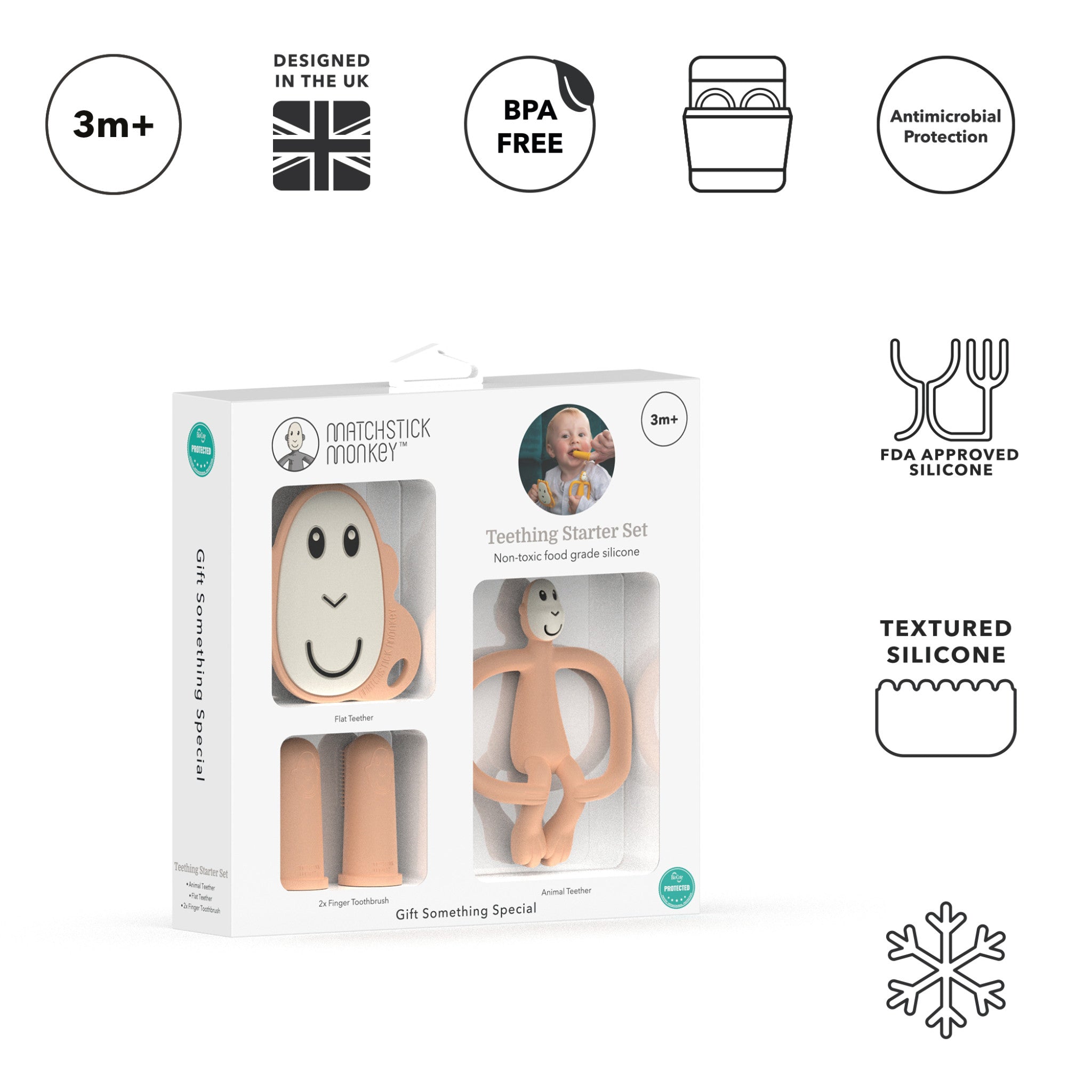 Matchstick Monkey Teething Starter Set Peach