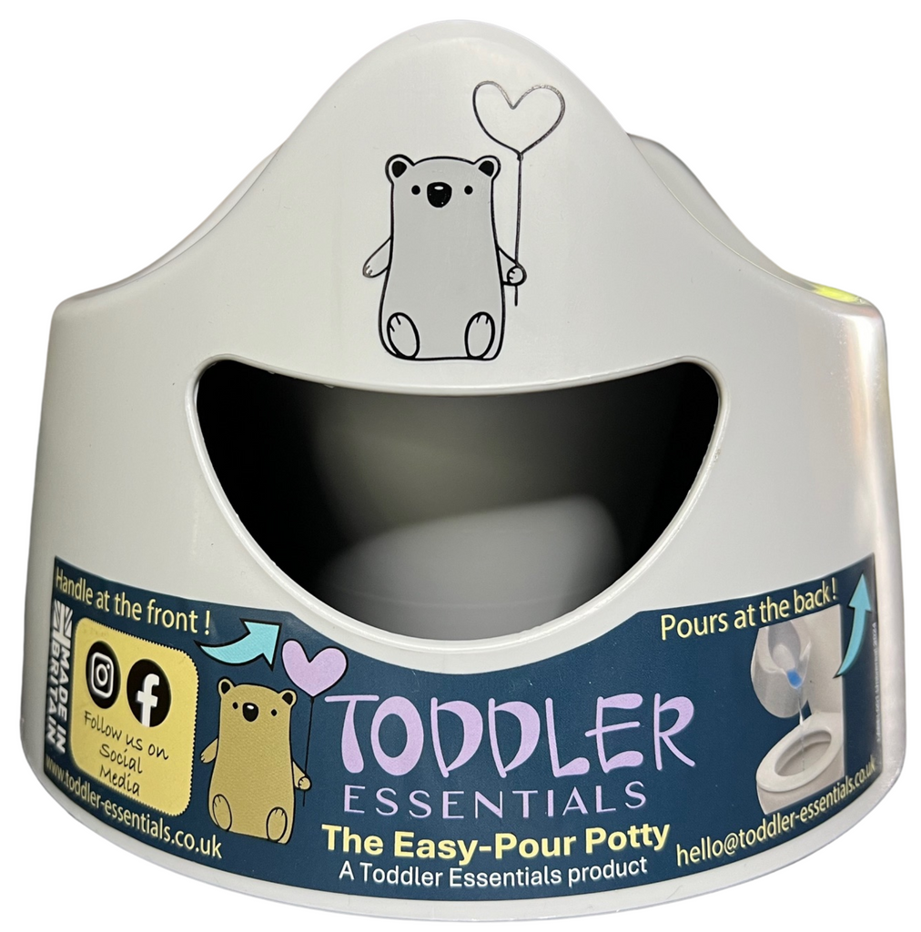 Discover the award-winning Pourty Potty, renowned for its innovative pouring design featuring an anti-drip lip for ultimate hygiene and effortless cleaning. Boasting a wide seating area for enhanced comfort, it also includes a convenient front handle for easy waste disposal, keeping the child's seating area clean and tidy. With a perfectly sized splash guard to prevent spills, this UK-made potty is not only functional but also environmentally friendly, being recyclable.