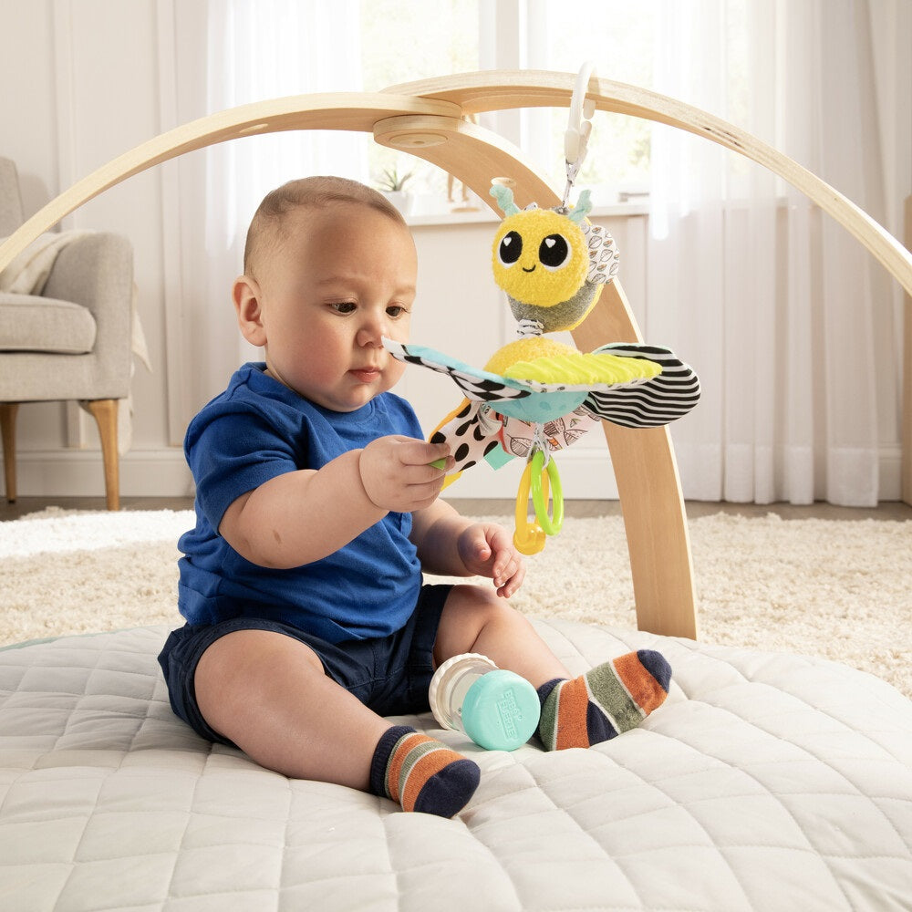 Lamaze Buzzy the Bee – All the Buzz for Playtime! Discover all the fun with Buzzy the Bee, the perfect toy to inspire exploration and development. With a soft body featuring bright colors, patterns, and textures, Buzzy stimulates baby’s senses. The mylar mirror lets baby see their reflection, while multiple textures and crinkles encourage tactile exploration.