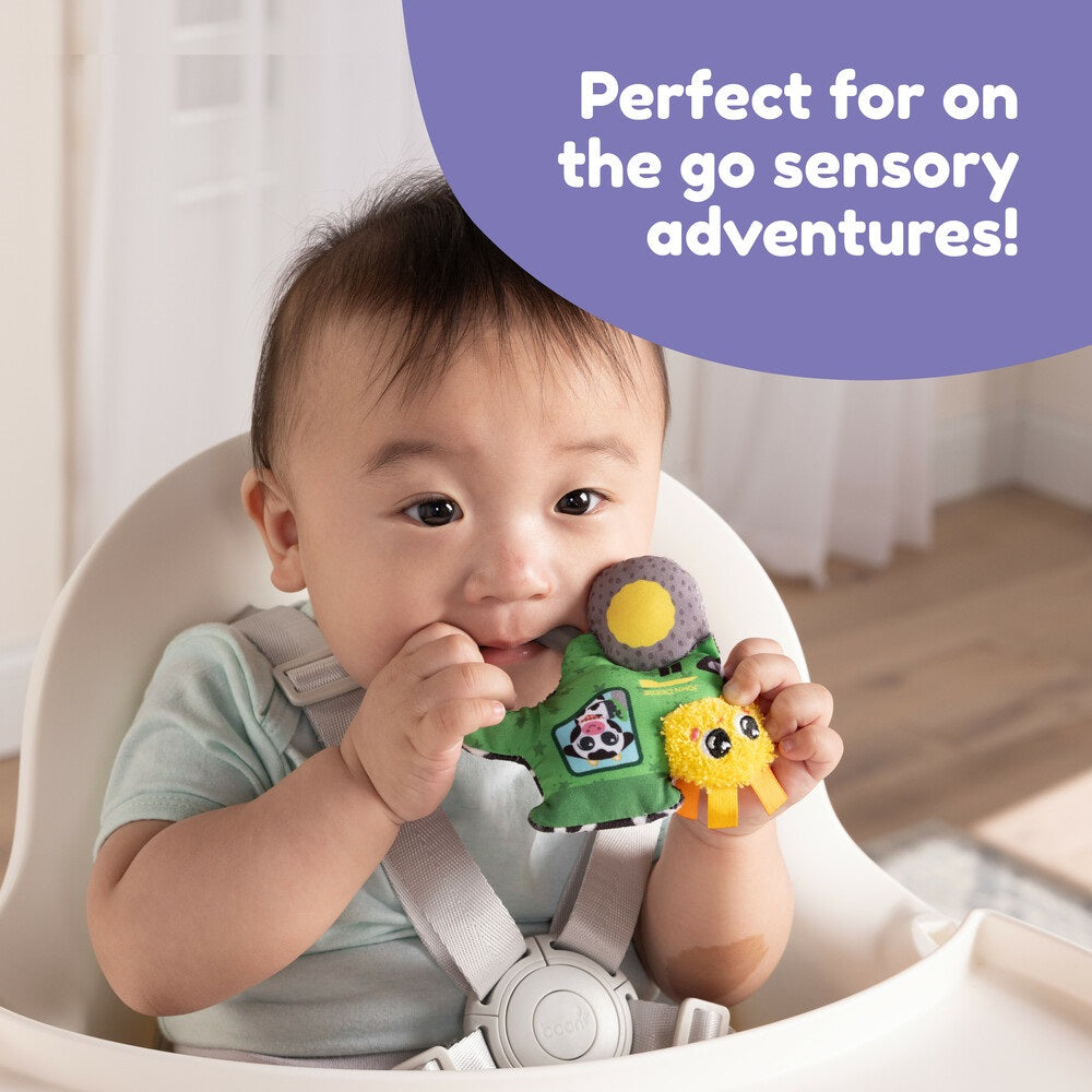 The Lamaze John Deere My First Tractor Rattle is an adorable toy featuring a cow driving a John Deere tractor, complete with a soft sun and colorful ribbons. This rattle is designed to stimulate your baby’s senses, promoting visual, auditory, and tactile development. Lightweight and easy to hold, it's perfect for on-the-go entertainment and can also help soothe teething discomfort. Suitable from birth, this rattle makes a wonderful baby shower gift and is made from high-quality materials for lasting fun and enjoyment.
