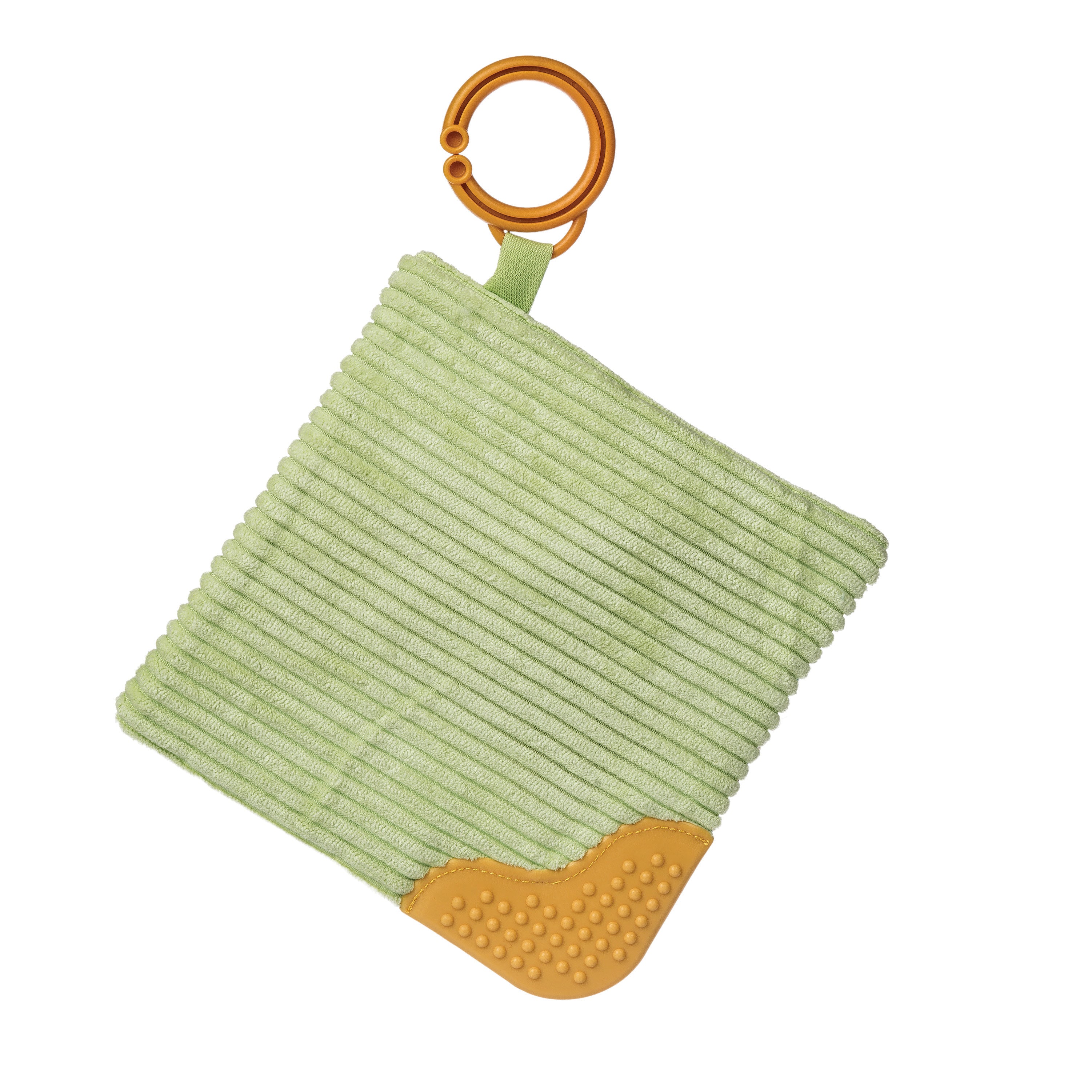 - Soft teether sewn in the corner for comfort