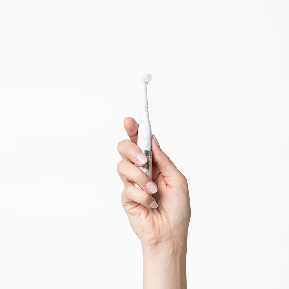 • Battery-powered electronic sonic toothbrush for babies and toddlers