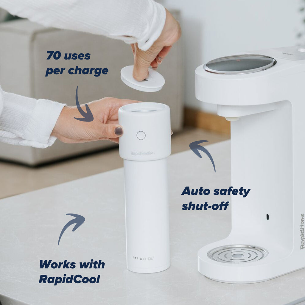 Sterilising your Nuby RapidCool just got easier with the Nuby RapidSterilise, the perfect companion for your RapidCool. Whether you're at home or on the go, this handy steriliser zaps away 99.9% of bacteria in just one minute, ensuring you’re ready for the next feed. With the press of a button, UV light provides rapid sterilisation, making feeding time quicker, safer, and less stressful.