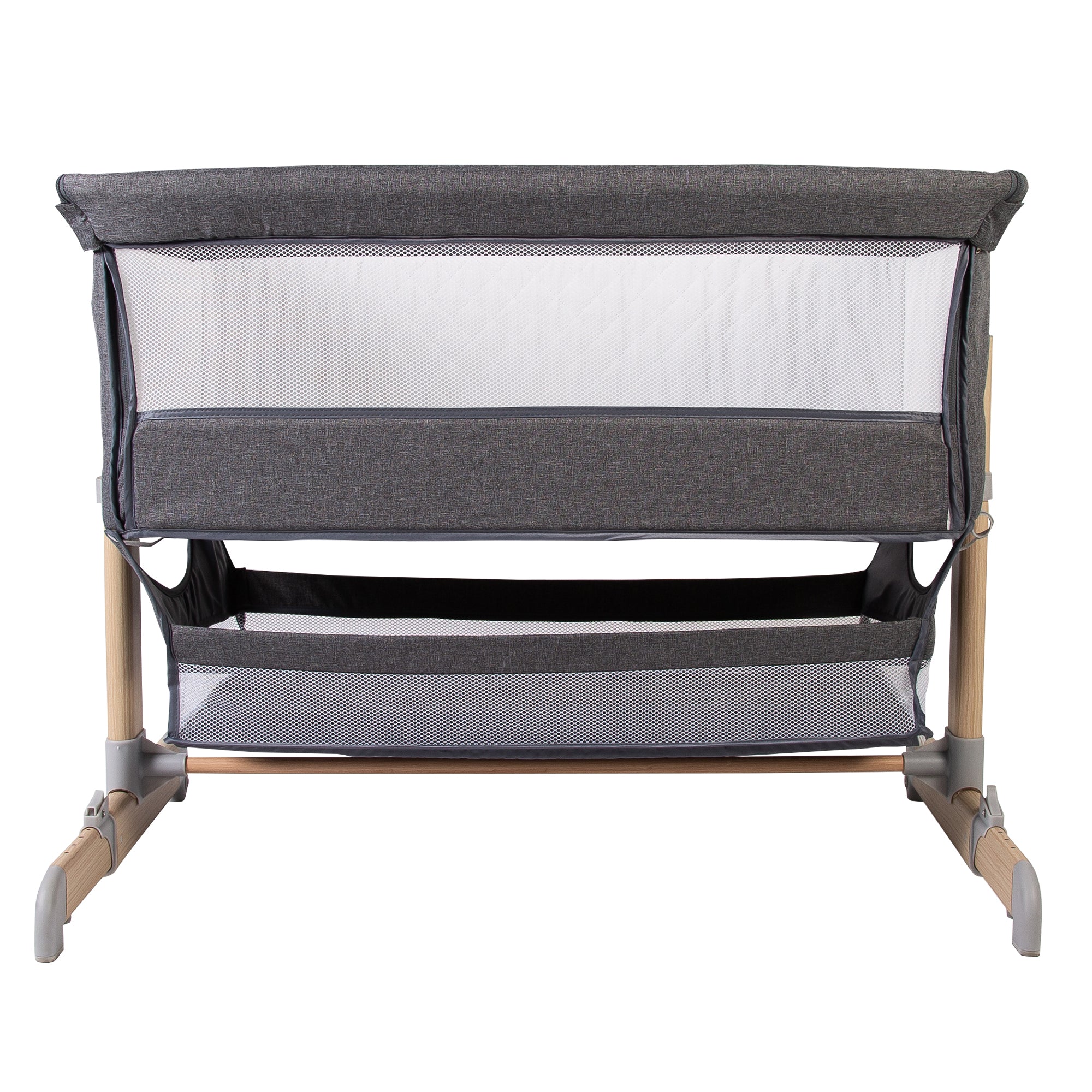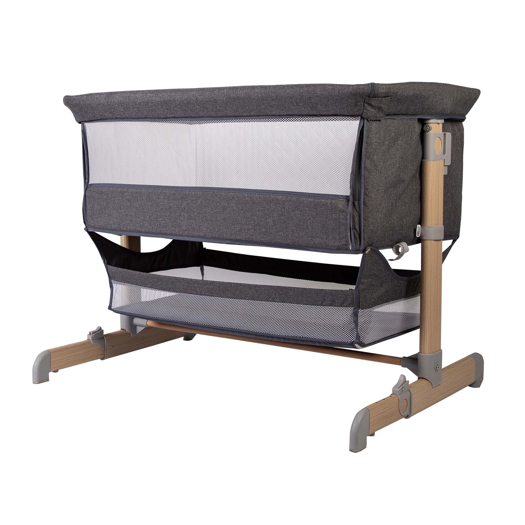 Introducing the Red Kite Una Bedside Crib, a blend of modern design and practical functionality, perfect for newborn babies. Its stylish wood effect finish frame and soft dove grey fabrics add a touch of elegance to any home setting.