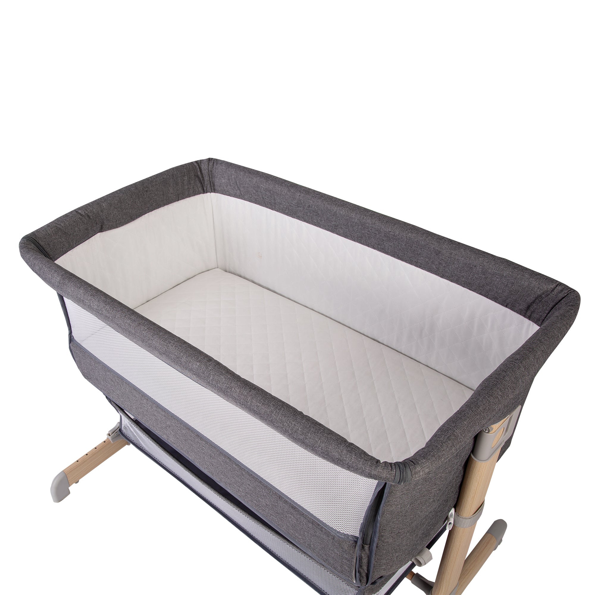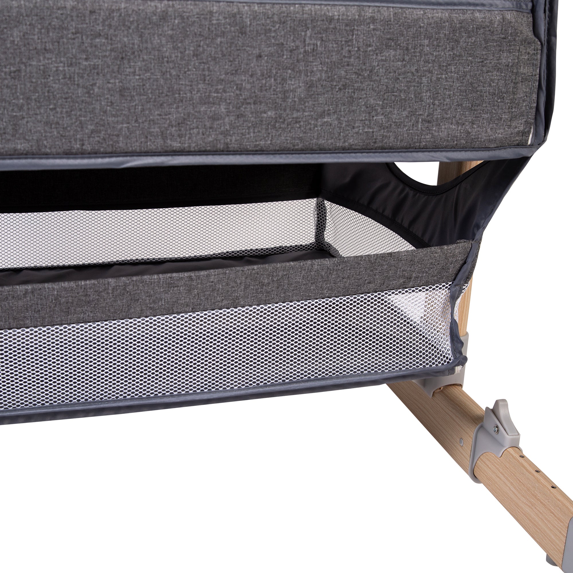 With full height adjustability using the supplied fitting straps, it accommodates different bed heights. Additionally, the crib offers an adjustable incline, medically recommended for babies with reflux, colds, and digestion issues.