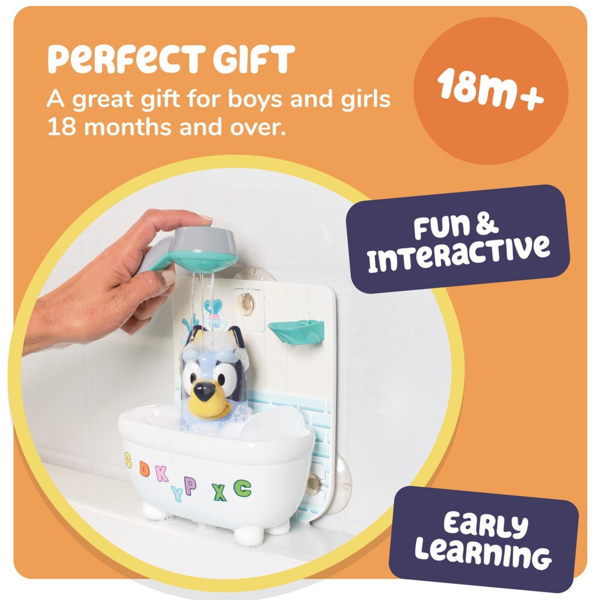 With the TOMY Toomies Shower and Scrub Bluey, bathtime becomes a fun, hands-on adventure. Fill her tub with water, add a bit of bubble bath, then press down on Bluey to create real bubbles. Use the showerhead to rinse her off—just press to fill and lift to pour. It’s a playful way to build fine motor skills and boost water confidence while keeping little ones entertained.